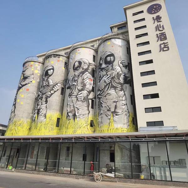 云间粮仓,位于上海松江区老城,有两个进出大门,东门在松汇东路上,北门在松金公路上。 云间粮仓的前身是上世纪50年代的一座粮仓,今世改造成了一座文创园区,上海有不少文创园区,这里我认为是最吸引我的一处,因为这里业态丰富,包罗万象,看点玩点多多。 这次是我的二刷,有经验了,分享一下游玩路线,玩转云间粮仓。 1、东门→人民河景观带→东门的历史寻踪路线,沿途主要有:涂鸦打破次元壁、啤酒文化博物馆、人民河景观带、油脂化工厂旧址、历史中轴线文化广场、筒仓、雨巷、院士楼等看点玩点; 2、东门→普照寺碑记→东门的通波揽胜路线,沿途主要有:太空涂鸦、地磅、古仓、何曦工作室、通波塘、曹刚工作室、余天成中医药文化展示馆、王汝刚工作室等看点玩点; 3、东门→十鹿九回头→东门的动静云间路线,沿途主要有:云间艺术馆、广场装置、演艺中心、洛克篮球馆、雨坤体育公园、攀岩馆、宽居云涧、云间半亩田等看点玩点。 东门和北门,自驾车和单车都可以进出的哈,里面停车的地方多的去,整个园区是24小时开放的,这里绝对是值得二刷、三刷、想刷就去刷的地方。