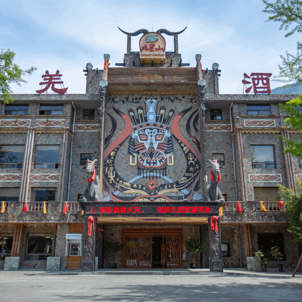 ...酒店,房价也很亲民仅需200+,整个装修风格带着浓郁的羌族特色,晚上酒店广场还可以感受萨朗晚会