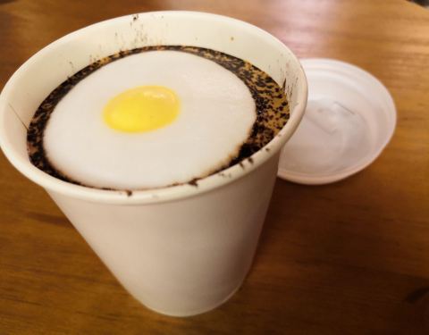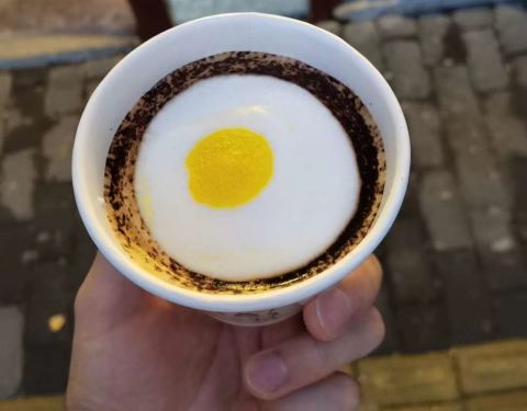 世界50佳咖啡 【口味】请大家务必点单荷包蛋,现在只有纸杯装外带,装在杯子里的“荷包蛋”,更加可爱了