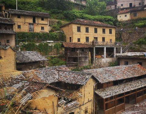 这是第二次来到陈家铺了,在村口新建的民宿已基本完工,建筑风格大气,用粽綜梆绳缠绕的方块装饰有特色,估计明年可营业了。陈家铺的民居依山而建,错落有致,黄色的泥墙、黑色瓦、石头小路是主基调,原汁原味,没有被商业化污染。在接近山顶有个高雅的先锋书店,可以点杯咖啡,坐在露台上静心看书!