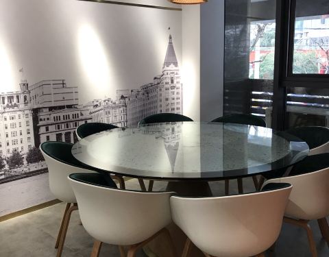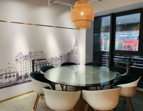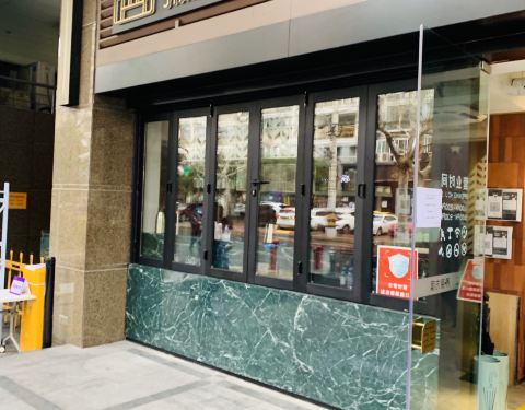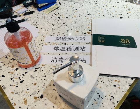 餐厅防疫工作做得相当出色: 所有店员的绿色随申码全部打印贴在墙上。透明玻璃可以看到厨房