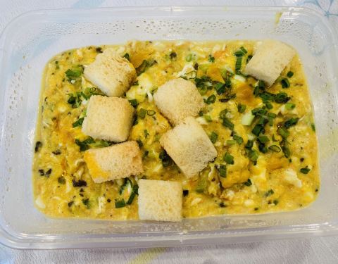 蛋羹南瓜泥,炖蛋上面铺了南瓜泥,口感也是蛮搭的,小小一盅佐饭或者小食都还不错
