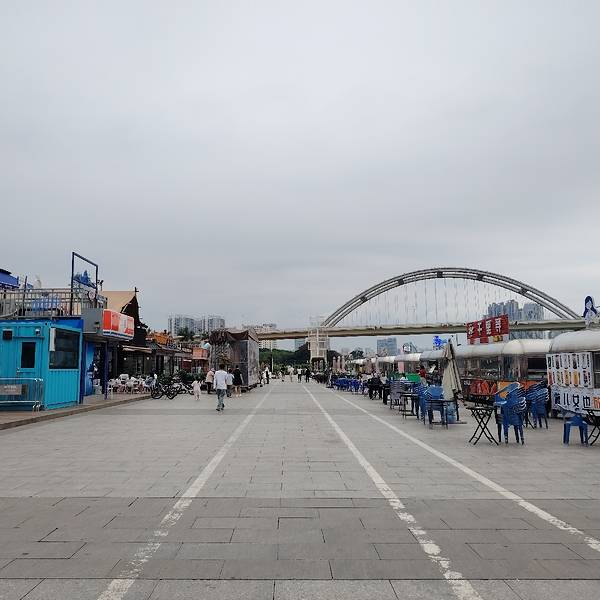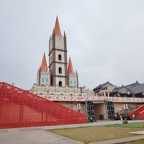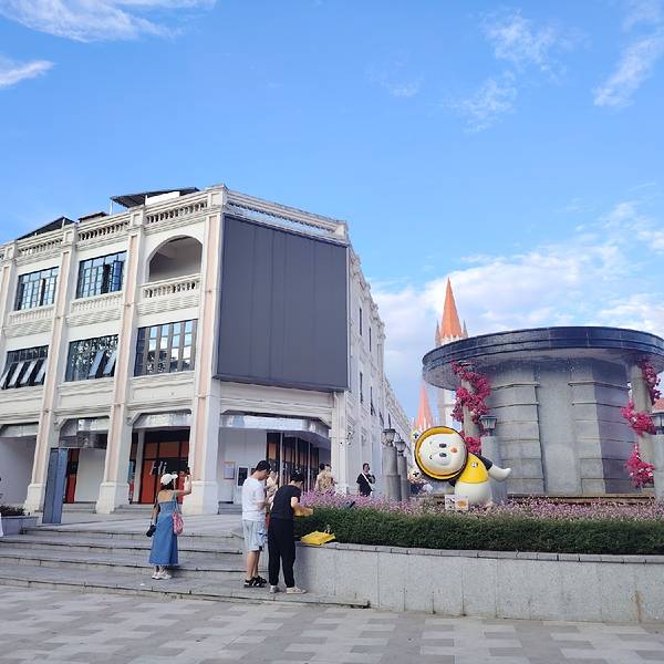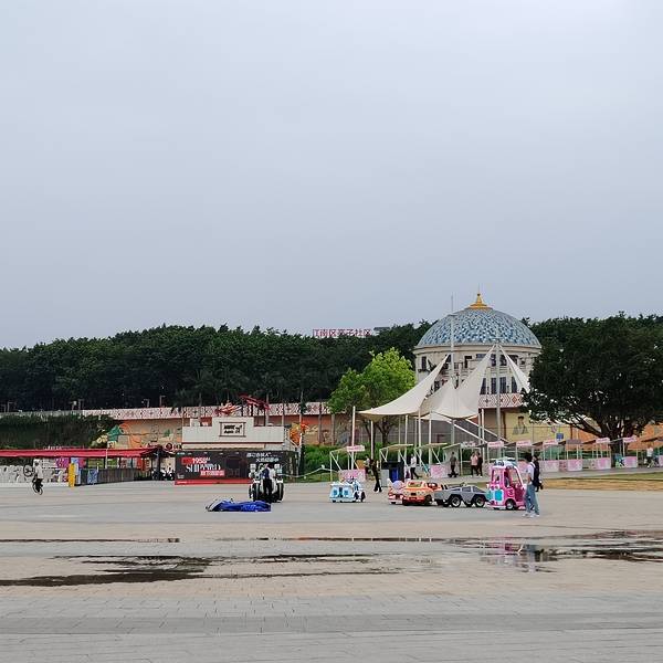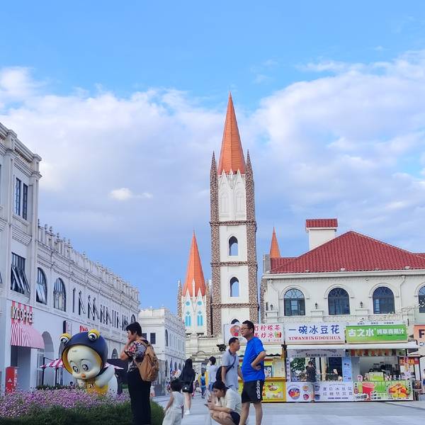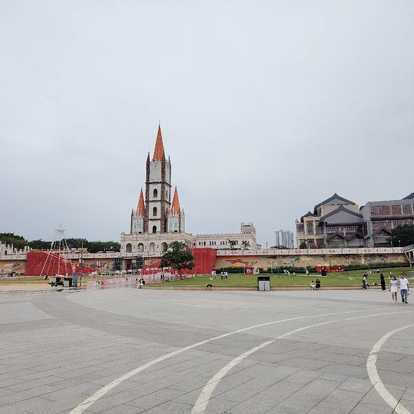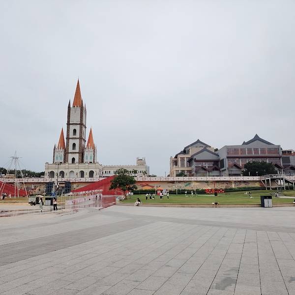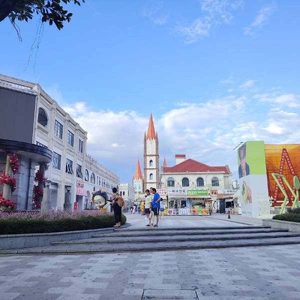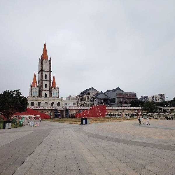 站在江边广场,广场挺大的,看起来很有童话色彩。
