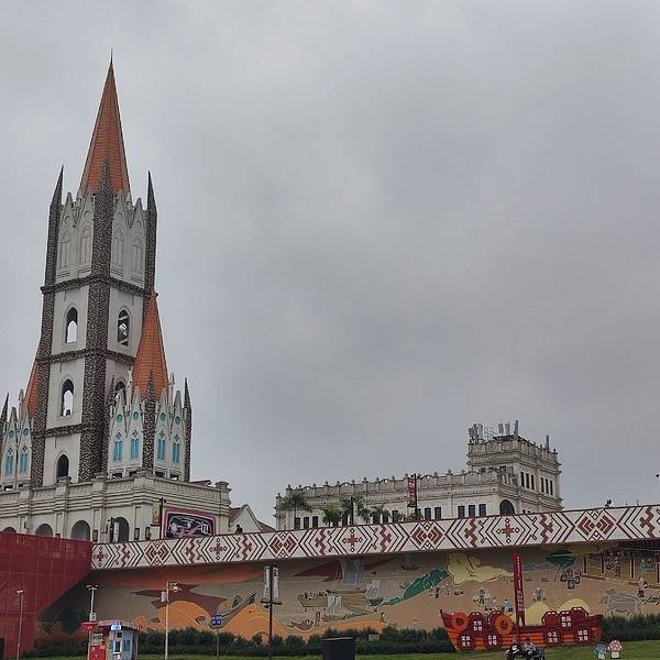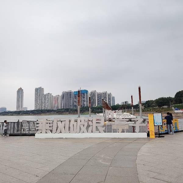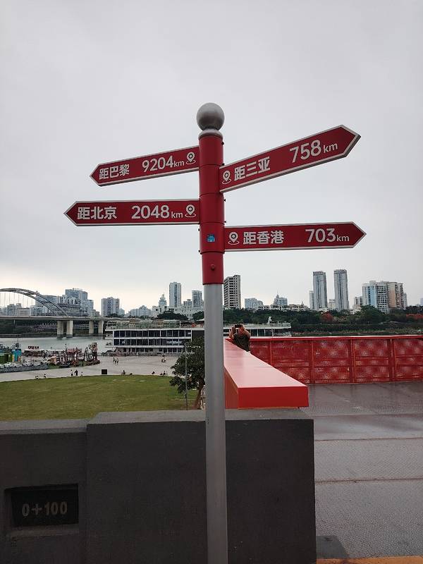 我从南宁亭子码头下来,就看到楼梯这面醒目的红墙,心情都亮了! 站在江边广场,广场挺大的,看起来很有童话色彩。
