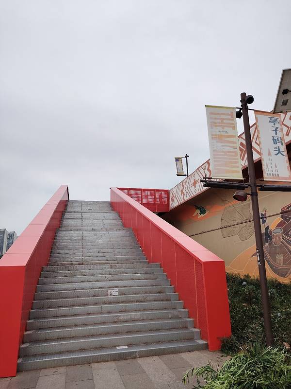 我从南宁亭子码头下来,就看到楼梯这面醒目的红墙,心情都亮了!