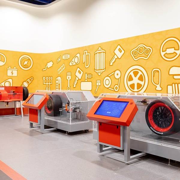 我最喜欢的是旁边的各种功能甜点模型,漂亮的棒棒糖,甜甜圈,马卡龙,冰淇淋。幼时曾经幻想过的城堡,真的出现在眼前了。橱窗里还有各种各样的芭比娃娃,每一个都很精致。对于喜欢芭比娃娃的人来讲,看这里的景色绝对是一种愉悦。飞车世界馆-男孩子的狂欢
