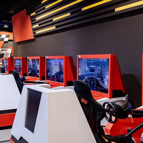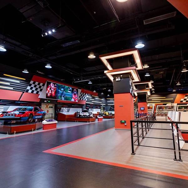 飞车世界馆里面是各种赛车,跑车。这对于只有各种赛车模型,而无一辆赛车的我儿来讲,简直是“久旱逢甘霖“啊。到这里就完全不想出去了。场馆特别大,里面有好几台赛车。有游戏机可以模拟赛车游戏,还有一个专业领域,进去后所体验的就是实时赛车的乐趣了。