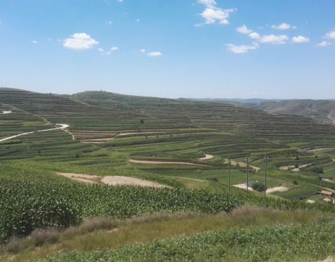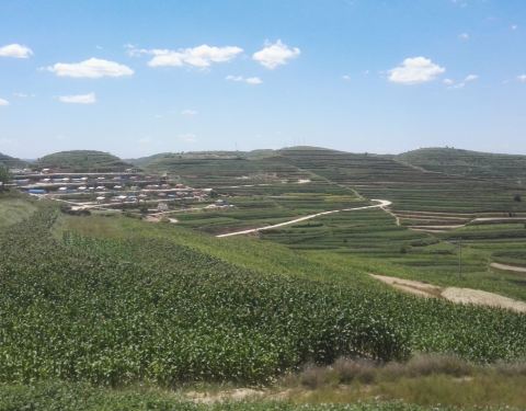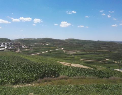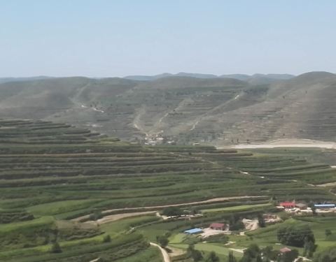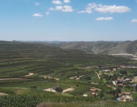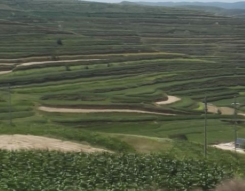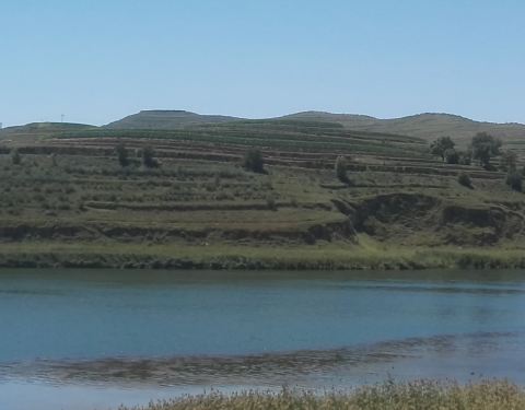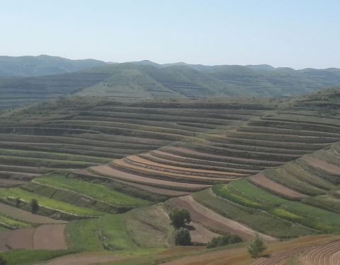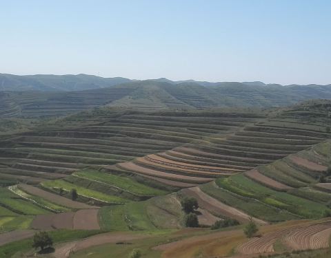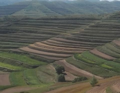在宁夏回族自治区固原市西吉县震湖乡党岔村,有一处1920年海源地震形成的堰塞湖,也叫震湖。在震湖周边的山坡上,分布着层层梯田,犹如优美的海螺沿山坡盘旋而上,千姿百态,活像一幅幅精美画卷。