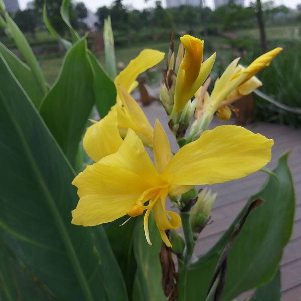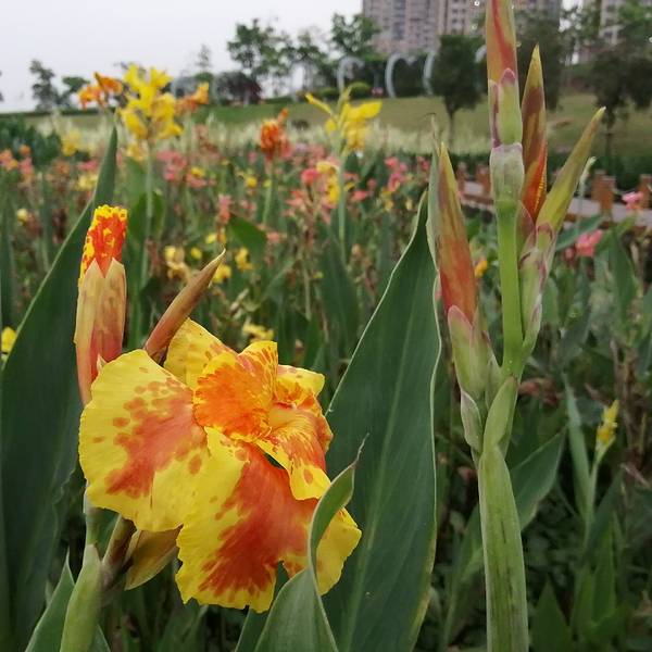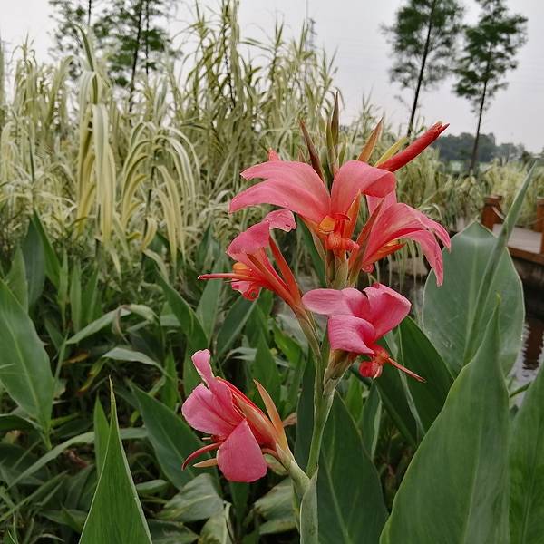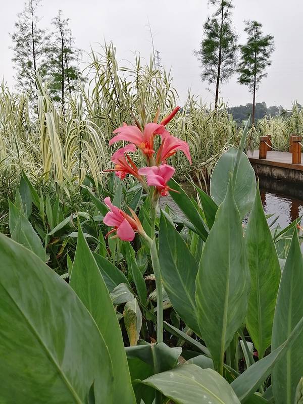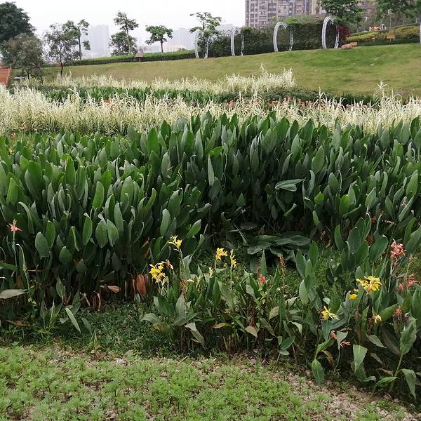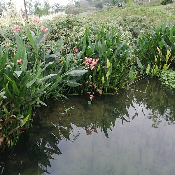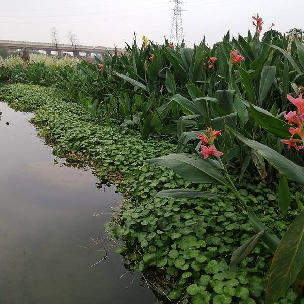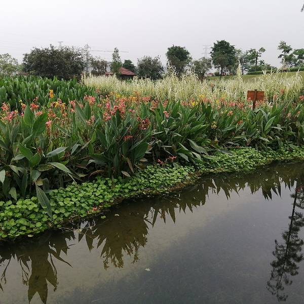 在南宁那考河湿地公园就种了连片的美人蕉,因为美人蕉的根系发达,是净化臭水的最好的植物
