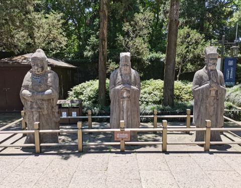 参观岳飞墓,最好奇的反而是秦桧的跪像,大概真的是猎奇心理作祟吧,秦桧等四人被铁栅栏围了起来,可以合理推测,踢他们啐他们的游客实在太多了