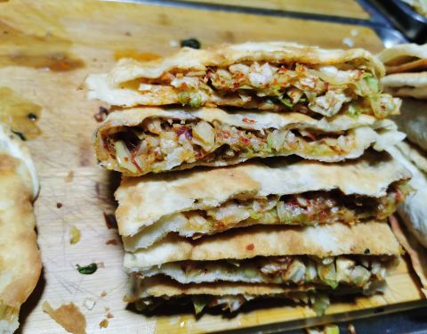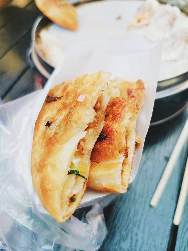 开在敦煌夜市里的天外天驴肉黄面馆老板还很好的送了一个冰箱贴~美味沙葱牛肉饼,排队也要回购好几个。