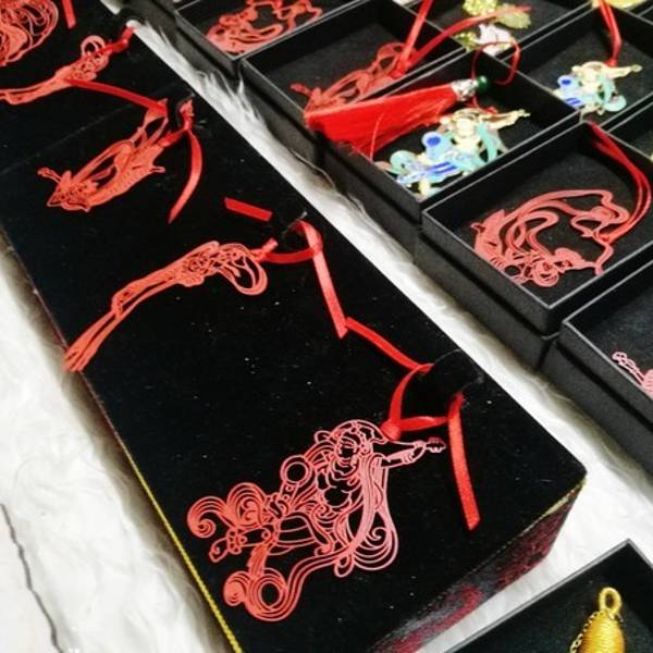 例如这个木雕,我就很喜欢,可惜都太大一块儿了,不好携带。这个是当地原创的书签,精致又可爱,结合了莫高窟内的花纹。我呢,出门旅行从来不喜欢买纪念品,一张明信片最多啦~