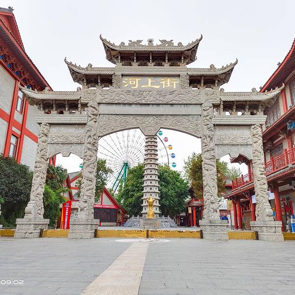 来小的地方旅游做攻略真的是不是那么方便的,之前一直认为河上街古镇是神州鸟园的一部分,但是真的到达了之后才发现这里是独立存在的一个景区,而且这个景区也是一个房地产商开发的。作为一个免费的景区,可以看到整个景点开发的还是很用心的,并没有特别浓厚的商业氛围,在一个又一个复古的建筑当中,尽可能的为我们展现了各种古代的文化。