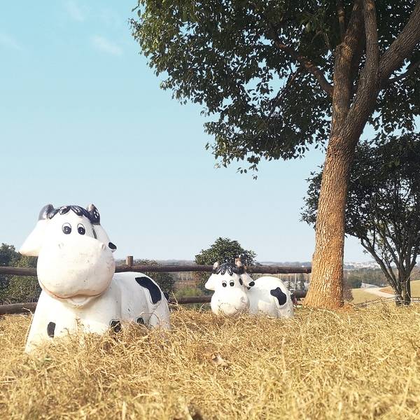 天气正好,山里走一遭,超级优美的环境,草地很茂盛,超可爱的娟姗牛,每头都有对应的标签定位哦,产出的牛奶也是最好的,超好喝又好玩~~~