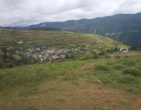 ...3000米,俯瞰小号的藏族村庄还有大片的草坪,安详的景色让人流连忘返,太美丽了,真想在这里生活