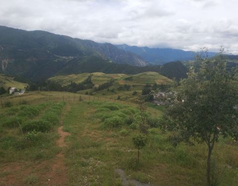 从丽江出发开车到香格里拉大概要四个小时的时间,路上会途径一个观景台,也算是一个休息区,可以休息一下去个厕所。远处是绿绿的梯田,景色很开阔