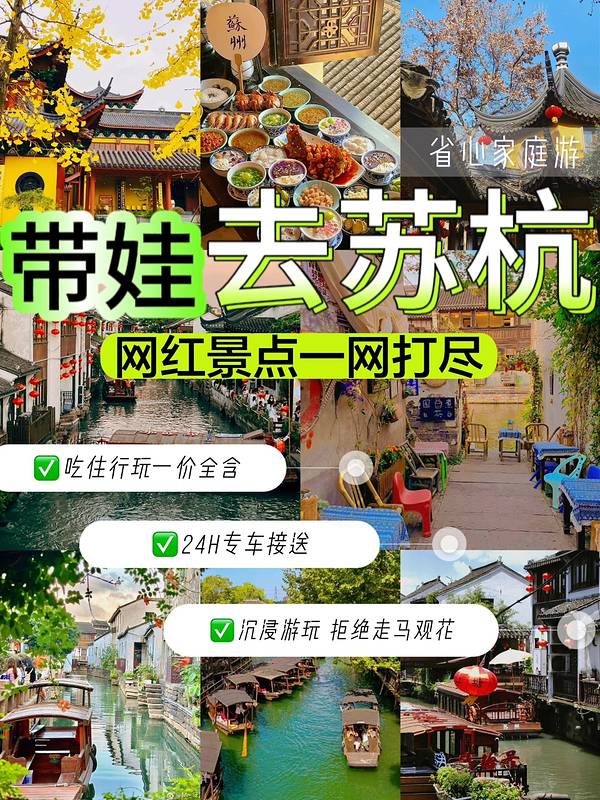 📍苏杭4日旅游攻略🔥轻松遛娃👶不踩雷||假期不知道带娃哪儿玩❓家里神兽蠢蠢欲动了吗‼️‼️还在纠结🤔去哪里旅行的小伙伴们 📍不如就来一趟【江南】ㅤ ⭕️江南地区是文化的重要发源地之一🍄,带着家人来感受🌿江南文化与风土人情蕞合适 · ✅打卡姿势 🚩西湖:春节期间会装饰上很多的花灯,友友们可以在这边穿上汉服打卡! 🏘️南浔古镇:一定要乘坐摇橹船,看南浔盛景~ 🏔️狮子林:冬天的梅花绽放,为这座山水园林带来了很多景色 ⛩️寒山寺:在寺庙里祈福,平静浮躁的心灵 🏯七里山塘:山塘街的春节会有很多新花样的糕点~ · 🔺3天行程景点安排ㅤ 📍D1:杭州接站→【乌镇西栅景区】感受水乡风情 🏩住宿:入住乌镇特色水乡客栈 - 📍D2:乌镇→【南浔古镇】→【福严寺】→【千年古镇西塘】 🏩住宿:入住西塘特色民宿 - 📍D3:西塘→杭州【船游西湖】西湖十景,苏堤漫步看西湖全景,断桥、平湖秋月 🌀🌀告别传统的跟团模式,几乎一日两/三景,亲测靠谱!跟着走就对惹🌚 · ❎不要再自己迷迷糊糊打卡,【跟团】是真的无负担+全家轻松出游不累✅ 🎁现在戳戳左下角【立即咨询】报名就送你超多贴心服务: ✅【吃】带你去吃正宗苏杭美食不踩雷~ ✅【住】全程入住超赞酒店,睡得好才能玩的happy ✅【行】24H全程接送,不走回头路 ✅【导】专业导游领队,拒绝走马观花 💙江南水乡,体验感不会让你失望👏