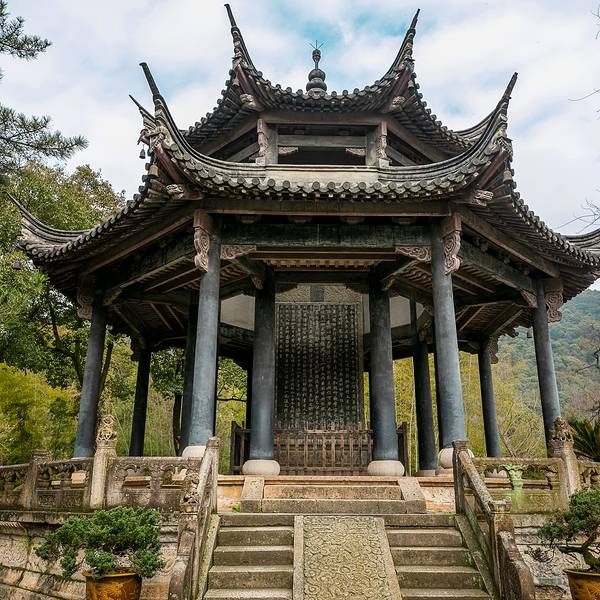 兰亭景区和禹陵、东湖并称为绍兴市郊的三大著名风景点,还没走进里面,就被秀美的山水风光所吸引,依山傍水,气度非凡。而一部《兰亭集序》让这里闻名海内外,“兰亭书法节”更是让景区的热度居高不下。进入景区,第一个景点就是鹅池,清幽静谧,白鹅浮水,好不惬意。因为王羲之爱鹅,养鹅,而碑上的“鹅池”二字是由王羲之王献之父子分别书写,也成了一段佳话,有着“父子碑”的称号。兰亭碑亭也是兰亭景区的标志性建筑之一,被称为中国中国四大名亭之一的它也有一段故事。碑阳是康熙帝所书的《兰亭集序》,碑阴是乾隆帝所写的《兰亭即事》,祖孙皇帝的手迹能在一块碑上看到,也是很罕见的。没错,当你看到一条“之”字形的曲水时,就来到了兰亭景区的重点景点——曲水流觞。崇山峻岭、茂林修竹,清流激湍,映带左右,东晋永和九年时,著名的书圣王羲之就是在这里和友人一起把酒作诗,成诗37首,成册为《兰亭集》,而王羲之本人所做的《兰亭集序》更是传唱至今,其书法也被称为“天下第一行书”成为中国诗歌界的千年佳话。我没有王羲之那样的才情才思,只能用镜头来记录下这优美的一幕,雅集盛会,是美好生活的象征,也是自由灵魂的歌唱。墨华亭桥也值得一看,由弧形石板桥和假山桥两部分组成的双桥设计在整个绍兴也是独一无二的。兰亭景区内的兰亭书法博物馆是中国最大的书法专业博物馆,在兰亭景区的核心区域。博物馆整体延续了绍兴台门式的建筑特点,以灰色为主,淡雅高远。这里处处都有王羲之的影子,一个大大的“之”字便是书圣的代表,既是王羲之的名字,又是《兰亭集序》中21个“之”字中的其中一个。之前就知道《兰亭集序》的“之”字都不一样,这回仔细地看了一遍,确实各有特色,虽然看不到书圣的真迹,但凭借他人临摹的作品,也能感受到书圣作序时的肆意豪情。博物馆里还收藏了许多名家作品,每年7月11日的兰亭书法节上的优秀作品也被收藏了,对于喜爱书法的人来说,是不容错过的。 地址:浙江省绍兴市兰渚山下 门票:80元,有特惠票 开放时间:8点半到17点