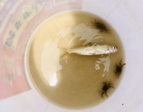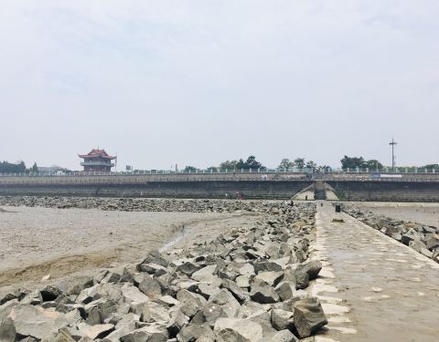穿过海盐城墙遗址,来到观海园,是一个观钱塘江潮的堤坝江塘。 正当低潮位,中午潮水已退去,露出嶙峋的碎石和泥塘,正是捕鱼捉蟹的好时候,石缝间,泥洼中,鱼跳蟹爬人欢笑。高高的鱼鳞堤坝就这样静静看着这千年...