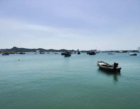 这里离海水浴场一公里左右,我是头顶烈日从海滨浴场走着过去的,海边的太阳可真烈,回住处才发现身上晒红了,回家没几天脚背和肩膀开始掉皮。不过不枉此行,这里别有洞天,视线非常开阔,远眺海景和远处海湾,风景非常优美。这里是当地人赶海和自助烧烤的地方,热闹非凡,还有船上餐厅。除此之外,乘船出海钓鱼是非常有意思的游玩项目。