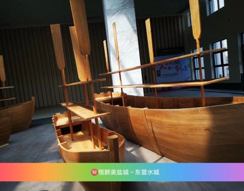 东晋城依托大纵湖优越的水资源,结合东晋城的历史文化资源,打造以水为魂,以“水城”为特色的东晋城休闲旅游度假区,形成了别致一格的“岛屿式”古城,描绘出一幅“船在城中游,人在岛中居”的水乡风格的清明上河图。东晋城·宋瓷般的雅致生活。 夜景与灯光秀、水秀是景区亮点!值得推荐,盐城真漂亮!