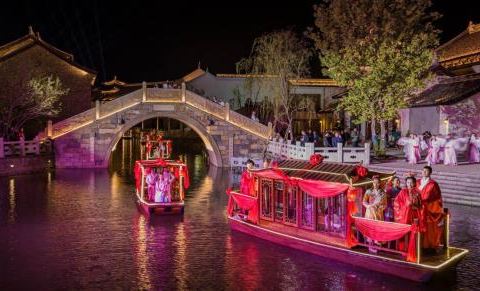 以“水城”为特色的东晋城休闲旅游度假区,形成了别致一格的“岛屿式”古城,描绘出一幅“船在城中游...
