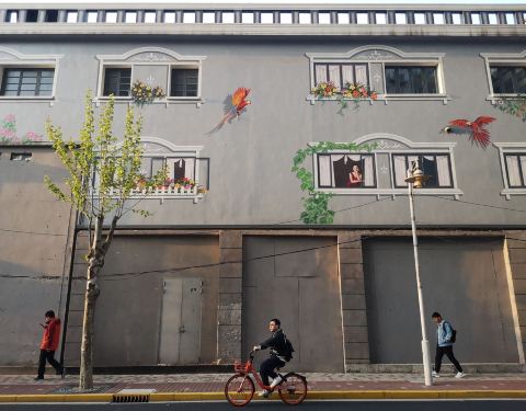 听说同乐坊拥有上海本土的工业痕迹。可是到达的时候,却是那幅壁画吸引了我