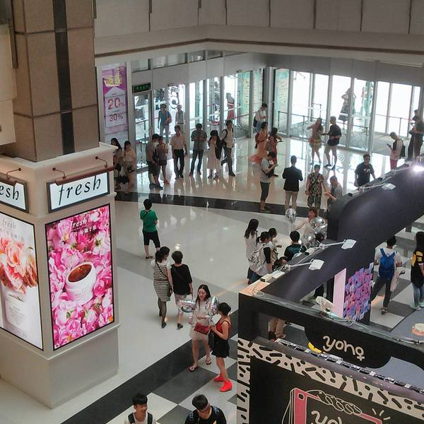 虽然来福士开业的比较早,但是里面一直都很新,装修什么的也很潮,里面经常有各种各样的活动,各品牌的室内路演宣传之类的,感觉周一到周日每天都特别热闹,化妆品,香水,阿迪三叶草等等品牌都有,活动也经常做