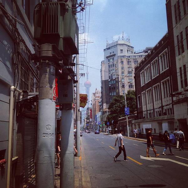 在这里的苹果店当乘凉试用了各类苹果产品,这个商场也是不错的,很大人很多,简简单单的逛了几家专柜就去找吃午饭的地儿了,找来找去发现吃得起的只有麦当劳,那也没办法只好麦当劳了。麦当劳里人非常多,端着餐盘等了好久才等来了座位。吃完后便准备步行去外滩了,因为中午很热,人一定很少,就这样踏上了遇高温斗争的路程。虽然热但是可以欣赏沿路风景,解放前的老上海的模样尽收眼底。