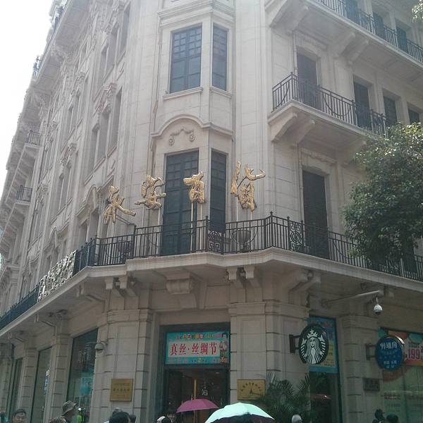 逛南京路步行街的时候,大老远一眼就能看到,非常醒目和老字号的高档百货公司,处于步行街中心位置,常年热闹非凡。一楼橱窗展示了不少瑞士名表,有劳力士,欧米茄等,经常有行人路过在橱窗外驻足观赏或者拍照留念,自然1楼就有对应的专卖店。里面的装修保持着一些老式上海百货公司的风格,步行的楼梯也是一样,里面的不少品牌,各类商品可以选择,人气鼎盛,特别值得一提的是,下午傍晚的时候经常会飘来萨克斯的乐声。这是永安百货的爵士秀,感觉挺有情调的,推荐一下。 另外马路对面就有沈大成, 不远的地方还有第一食品商店,各类小吃和餐馆齐全,从边门出来走道九江路这里有不少酒店可以解决住宿,古象大酒店,王宝和大酒店和七重天宾馆等等,满足各类游客需求。