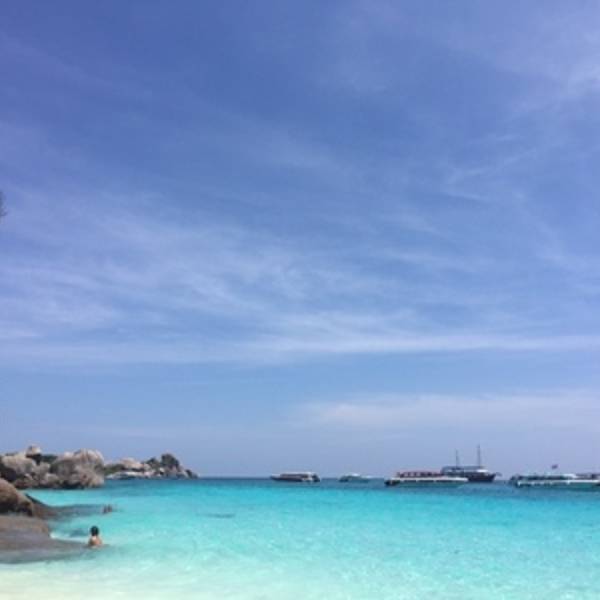 来到斯米兰,才知道海滩也可以这么美。海非常蓝,沙滩非常白,要比普吉岛上的沙滩好的多。远眺蓝的海水近处看非常清澈。斯米兰有好几个岛,我们是先来到最大的岛,这个岛还有个小山,能爬上去看看,还有大蜥蜴,以前只在动物园看到过,不过也没敢摸。之后又来到了其他的岛,意思差不多,都是纯天然的样子,但是住就不建议了,条件还是有些差。中途有几次浮潜,喝了几口海水,太咸了。