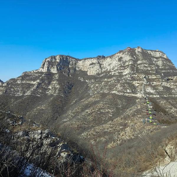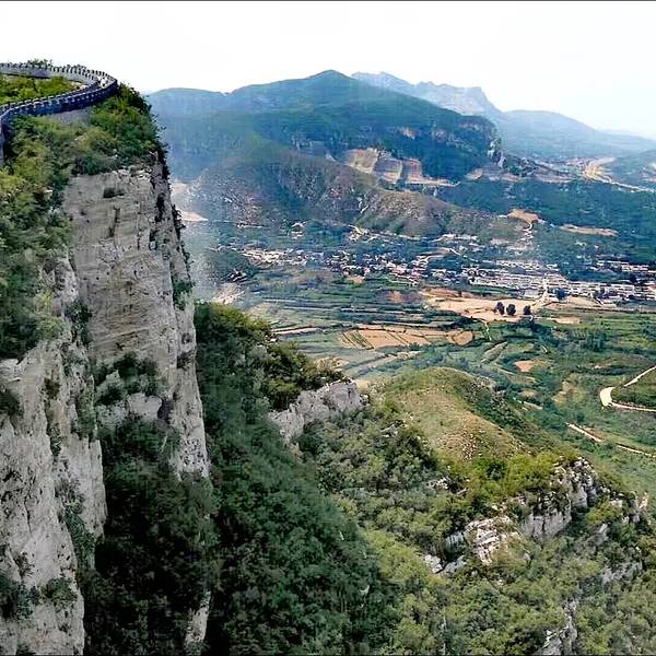 抱犊寨,旧名抱犊山,古名萆山,位于河北省石家庄鹿泉市西郊,海拔580米,山势巍然,仅南北坡各有一条羊肠小道可通。登至山颠,豁然开朗,有土地600多亩,修建有山顶门坊-- 南天门,山顶地下石雕五百罗汉堂,金漆壁画装饰的韩信祠以及长城寨墙等。新开辟的“西苑--莲花山--抱犊寨”客运索道全长1800多米,没有中间塔、全封闭往返式客运索道,悬空高达271米,成为抱犊寨的一大景观。