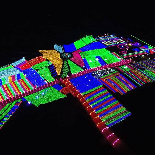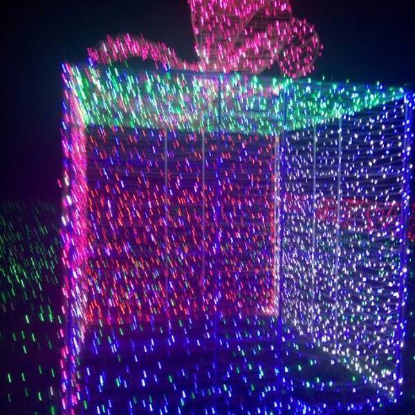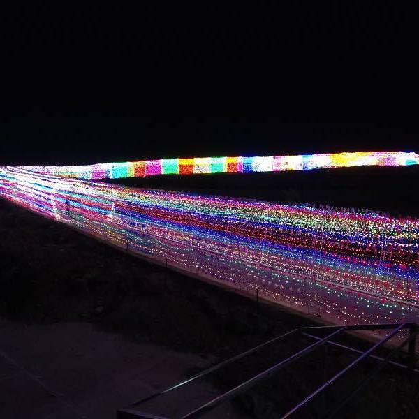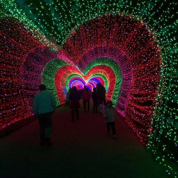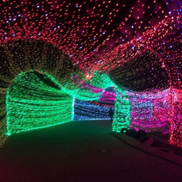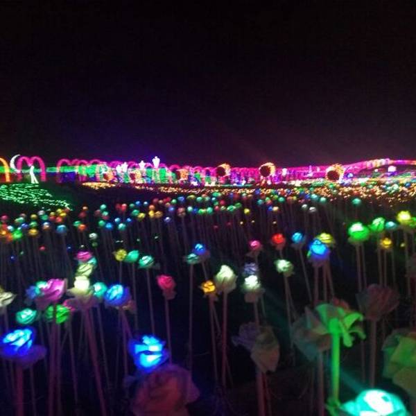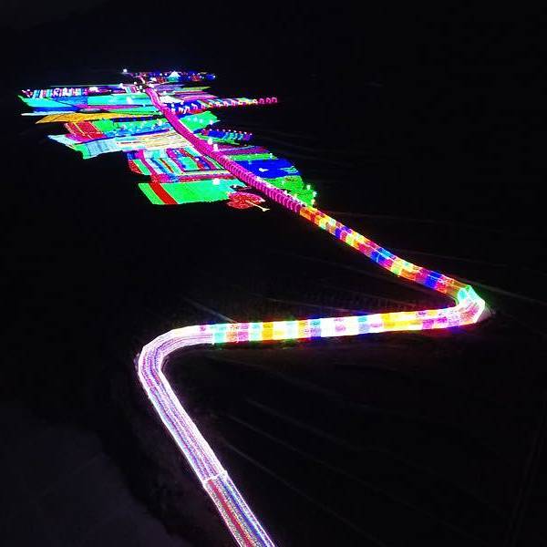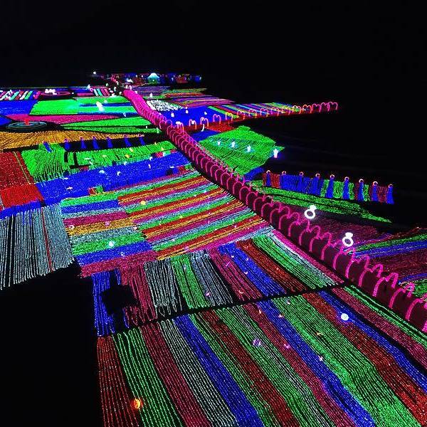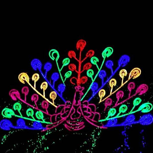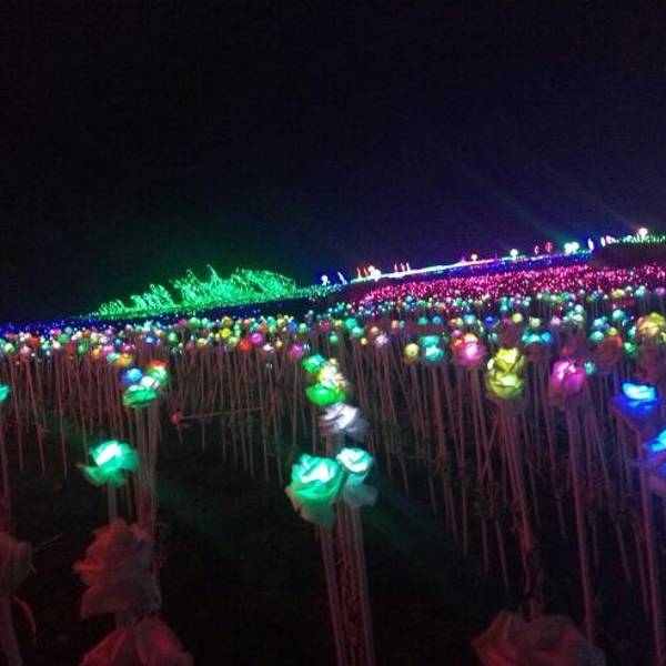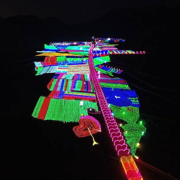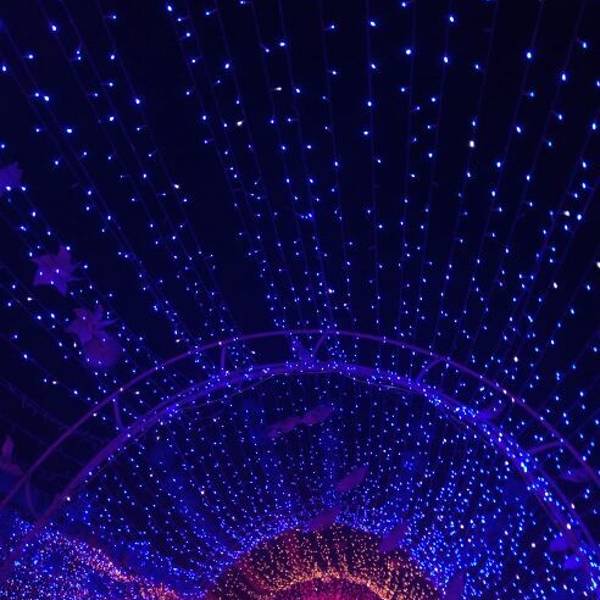 一走进大门,就看到粉色、紫色爱心灯带连成的时光隧道,再往前走,一组帆船与海豚造景在一片灯光的“蓝海”上仿佛正在波光中行进,蓝色的灯光为游客打造了一座富士山,荷兰风车,十二生肖等景观,走进其中,放佛置身另一个奇幻世界。润黔花海国际灯光节。远离城市的喧嚣,让人身心都得到放松。灯光节的各个角落,游客纷纷拿出手机来拍照留念,记录下精彩的一刻。