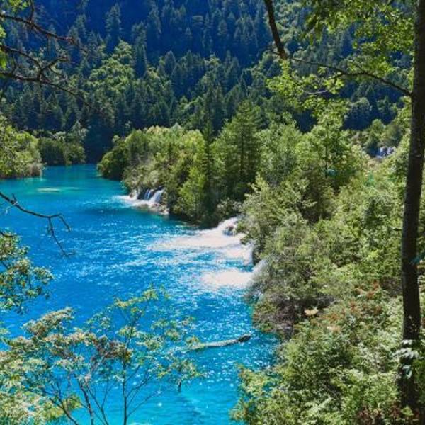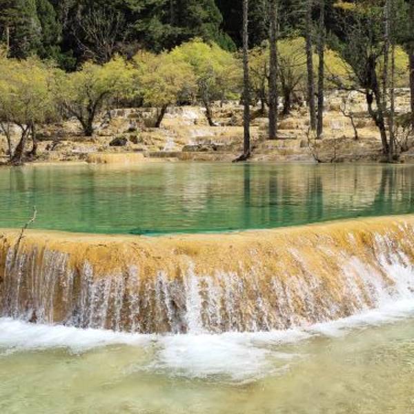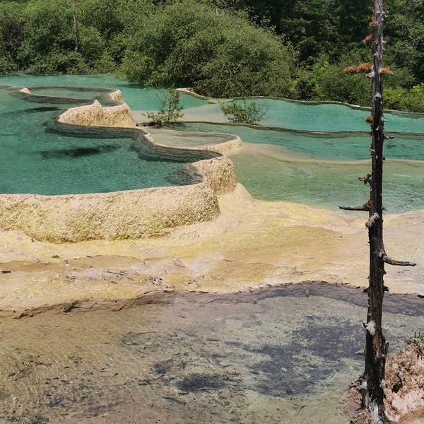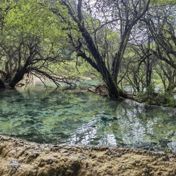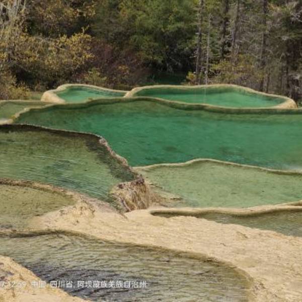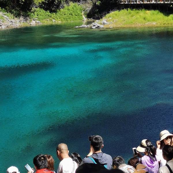 不久就来到著名的五彩池,面积小巧玲珑,如玉的湖水因湖底丰富的矿物呈现出幽深的蓝紫色,并把阳光折...
