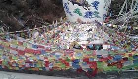 到了镇上需要换乘当地的交通(小面包车,需要每人自费40元往返上山),经过煨桑广场、玛尼墙后登上海拔3685米之纳勒山(含神山之意)半坡,探访古老的观音庙。 展开