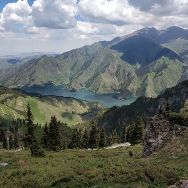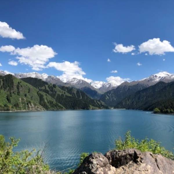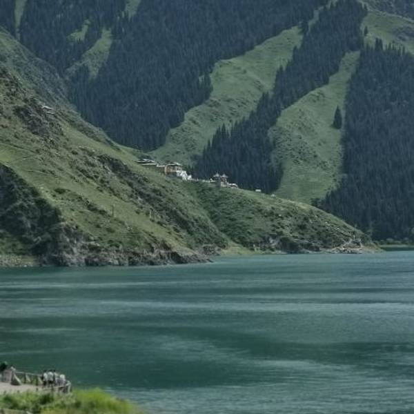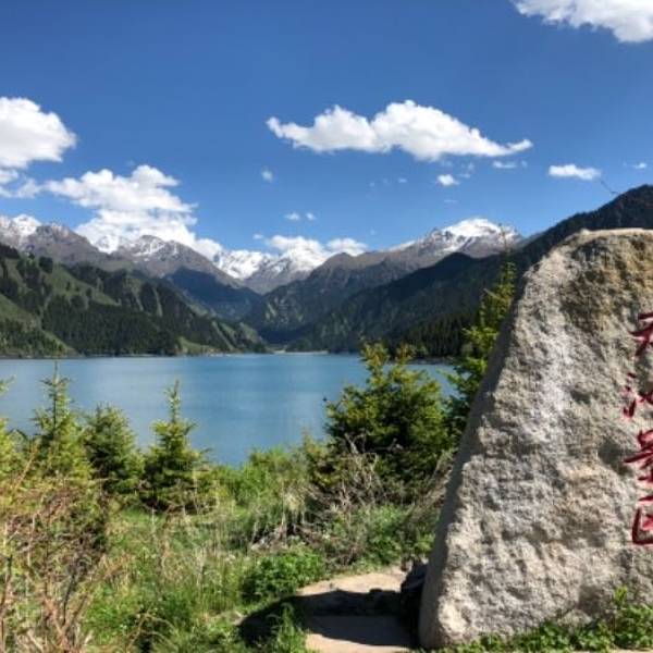 抵达传说中的"人间瑶池"---天山天池,换乘区间车,游览天池,观赏定海神针、远眺博格达雪峰。可步行沿天山栈道抵达瑶池东岸,观赏西山望雪、南山观松、望顶天三石,眺马牙山风光。全方位欣赏一日有四季,四季景不同的高山湖泊美景。雄阔的天山山脉全长2500公里,横亘亚洲腹地,为塔里木盆地和准噶尔盆地的天然分界线,距乌鲁木齐约120公里,平面海拔1928米,素为有名的游览胜地。1982年。天山天池风景区以高山湖泊为中心,雪峰倒映,云杉环拥,碧水似镜,风光如画,古称“瑶池”,据说神话中西王母宴群仙的蟠桃盛会便设在此处。“天池”一名来自清代,取“天镜,神池”之意,极言此地风光之美。湖水系高山溶雪汇集而成,水深近百米,清纯怡人。每到盛夏,湖周绿草如茵,繁花似锦。即使是盛夏天气,湖水的温度也相当低,是避暑的好地方。天池背靠博格达峰。山峰终年积雪。站在天池边上,眺望皑皑雪峰,别有风味。天池四周的山腰上,有许多云杉林,清澈湖水,皑皑雪峰和葱茏挺拔的云松林,构成了天池的迷人的景色。天池海拔在1980米左右,长约3.4公里1.5公里105米。湖水清澈碧透,周围云杉茂密。
