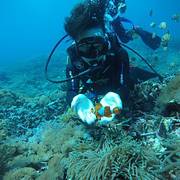 本来订的海底漫步,临时改成了深潜。潜水助理带我去拍摄了尼莫(超近距离)。今天早上因为一些事心情不好,又因为一些事变得身无分文,女导游姐姐还请我吃了一个椰子,非常感谢,心情也好了许多。两位导演都很热情,虽然很累,不过的确很不错!