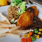 自助午餐挺好吃的,环境不错,有个泳池挺好看的,可以再这里游泳🏊打球,非常好。还有很多外国人在这里日光浴,很是享受。