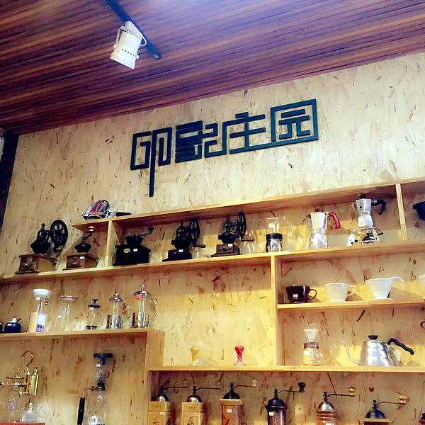 店内售卖云南特产的小粒咖啡豆和各类咖啡器具。