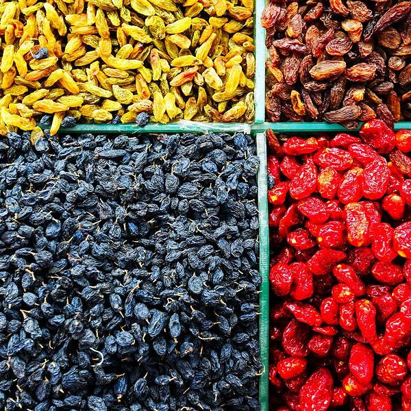 在乌鲁木齐,走进红山市场干果市场,摆满了货架的干果色彩鲜艳而诱人。可以直接打包邮寄回去。