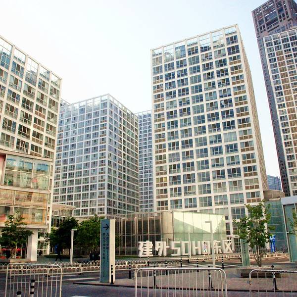 建外soho是明星地产企业家潘石屹的知名项目,由日本设计师山本理显设计的白色火柴盒楼群,在北京的CBD核心区域格外显眼。这个可容纳5万人居住、办公、休闲娱乐购物的大型社区,在2004年横空出世的时候代表着北京包容与接纳着一种全新的生活前沿理念。据设计师表示,建外SOHO的灵感来自一个名叫休达的摩洛哥城市:"我的做法就是把建外SOHO做成开放的,把一条条街穿插到建筑中去,打破了北京胡同和四合院的封闭概念。"同时,楼里可供商住的单位也打破了传统三室一厅的概念,完全是开放式的空间,让业主自由发挥。乘坐地铁1号线到国贸站下,从西南口出来,便可到达建外soho东区。社区大约有十几栋楼,在北京的黄金地段占地面积可不小。从建外soho能远眺到不远处的北京新地标——中央电视台(大裤衩)新址。几乎每栋楼底商都是对外的商铺,以餐饮店和服饰店居多。尤其是中午午饭时间,这里成了附近上班族解决午饭的地方,从小吃快餐店到中高端的饭店都有。而再往楼内找,还有不少美容美发工作室、婚庆、高级成衣定制、外语学校等,相当的热闹。傍晚过来这边,待上班族们离去,这里又更多了些生活气息。不少人在楼间的广场内喝着奶茶、咖啡,散步、遛狗……这个没有围墙的社区,CBD星星点点的灯光,让这里的夜色更加时尚、绚烂,据说老潘本人在这里给自己也留了一户单元,有专用电梯直接入户。 那么问题来了,如果可以选的话,你愿意在都市中央的建外soho生活吗?