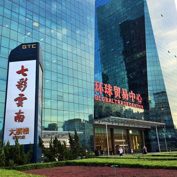 环球贸易中心地处北京东城区北三环东路36号,属于安贞区域,过来的话地铁5号线和平西桥站A口出,沿着北三环东路步行个10几分钟就到了,还是比较好找的,这里有很大一块CBD区域,不少办公写字楼,同时还有著名的金隅喜来登酒店,每次来北京基本都会住这里,自然少不了要在附近逛逛看看了。由于地处市区又兼着办公和购物区域,这里总体配套还是比较齐全的,餐饮这里有很多各类口味的门店,著名的云南云海肴也在这里有分店,其他还有著名的汉堡王以及不少粤菜馆和云南餐厅,边上有家挺高大上的黑天鹅蛋糕店,橱窗弄得很漂亮,价格么也是水涨船高。周边不少居民区,生活气息浓厚,草坪空地上不少周边居民休闲放松,当然这里也有一家精品超市和影城了,总体弄得还是挺酷的,算是安贞一带的一个小中心区域了,过来吃饭看电影休闲放松还是挺不错的。