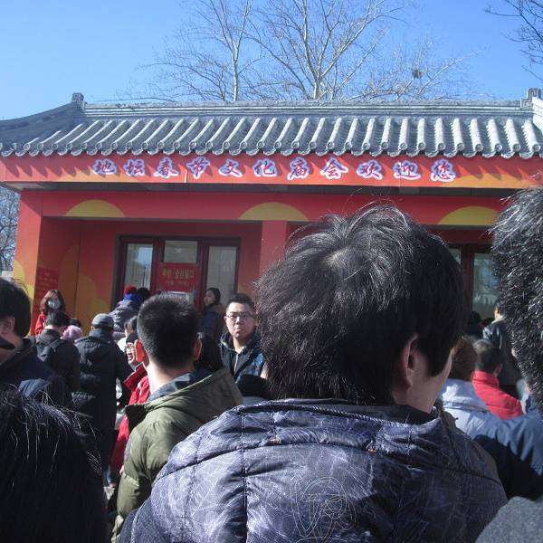 去完酒吧稍微休息了下,就去逛地坛庙会。 体验体验老北京风尚。年味很浓。商业化的氛围从大门口做起。这里是打枪区,好多娃娃。打枪区左拐,工艺品,游客须知:取名工艺品的东西,别往正品珍品上靠。人多的地方,生意好做,一百3串木头珠子,有人买,茶杯,有人消费,他们可能不逛淘宝,或许是认为摆摊的都是良心价? 人多的时候一个伸手带动仨,请谨记自己的目的是参观!文房四宝请问谁享用过鼻烟?这个挤不进去,奇怪其他地方没有吗?地坛是这个样子地,每天三次表演当时皇帝的祭拜仪式。摩肩接踵,人山人海,玩的项目没多少,吃的也不多,全是重复性小商铺。35一串红柳羊肉串,42一份葱爆羊肉夹馍,我想说句话,用下面这张图片代表啦。