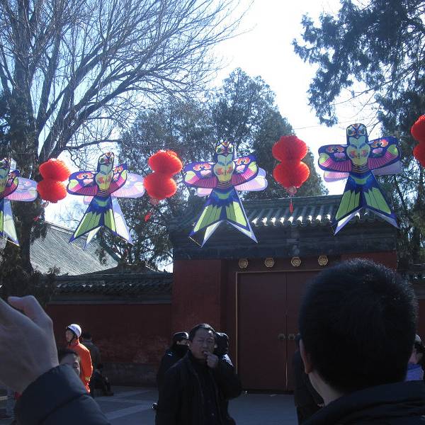 早上我们八点起来,我买回肯德基早饭,在旅馆吃完才去的庙会。庙会离我们很近,只需要过个天桥啊。值得一说的是庙会,虽然已经商业化了,但是很热闹啊,我们从九点多逛到十二点。 庙会上有各种民俗表演,当然也少不了卖各种小吃,玩物儿的,可以尝尝牛皮糖,特产嘛。
