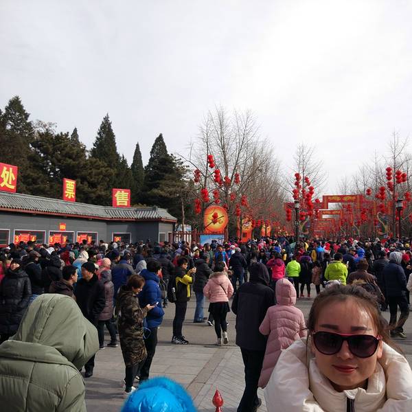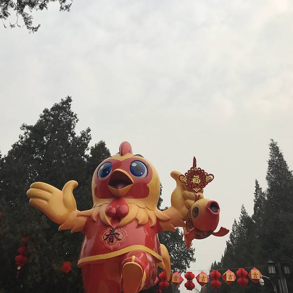 每年都有的一个项目,据说北京的十大庙会,地坛庙会是其中规模最大人最多的一个,建议选择公共交通工具前往,因为人多停车位少,不要选择自己开车,如果坐公交车的话,需要提前或者推迟一站下车,因为司机会提示地坛站不停车。。。 不过逛起来还是很好玩的,可能也是因为人多热闹,门票10元钱,整个地坛被红色包围着,各种红色的灯笼,吉祥物以及新春福字。 虽然有点雾霾,但是不影响大家来庙会过年的心情,初一的庙会最热闹。有很多各地的美食,杂耍和地方特产。不过因为人实在太多了,很多美食前面都是人头攒动,根本没有信心在寒风中排队半小时了。另外还有很多游戏的地方,价格是30元5个游戏币,游戏赢了可以获得不一样大小的娃娃,不过感觉和娃娃机一样,赢的难度实在很大。喜欢热闹的人一定要去逛一下,不虚此行。今年是鸡年,所以各个大门都被鸡的吉祥物占据了,想要和吉祥物合影还不是一件容易的事,要抢拍,因为人太多!