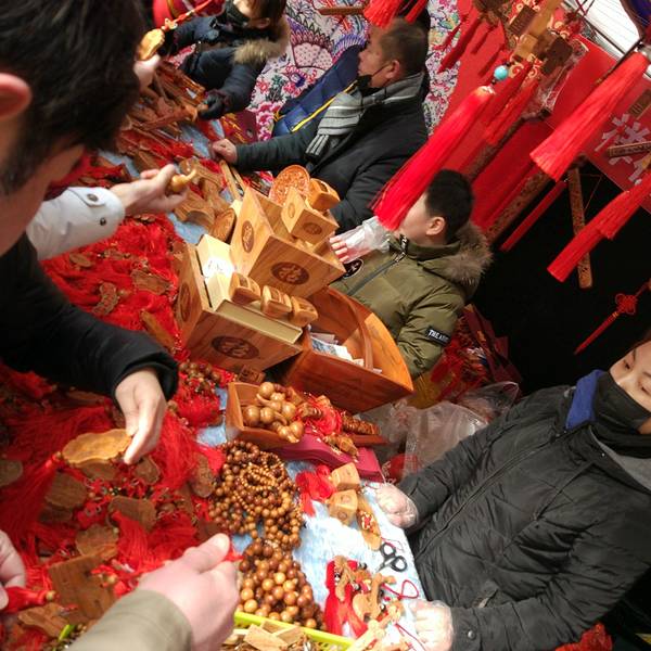 体验体验老北京风尚。年味很浓。商业化的氛围从大门口做起。这里是打枪区,好多娃娃。打枪区左拐,工艺品,游客须知:取名工艺品的东西,别往正品珍品上靠。人多的地方,生意好做,一百3串木头珠子,有人买,茶杯,有人消费,他们可能不逛淘宝,或许是认为摆摊的都是良心价?