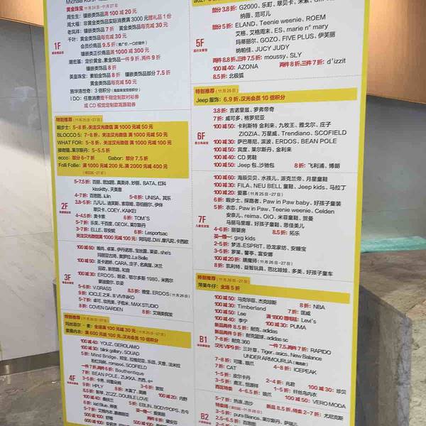 - 特别显眼,而且地下室一层都是体育用品,但是折扣不多,挺多七折或者九折,少淑装都挪到地下室二层也...