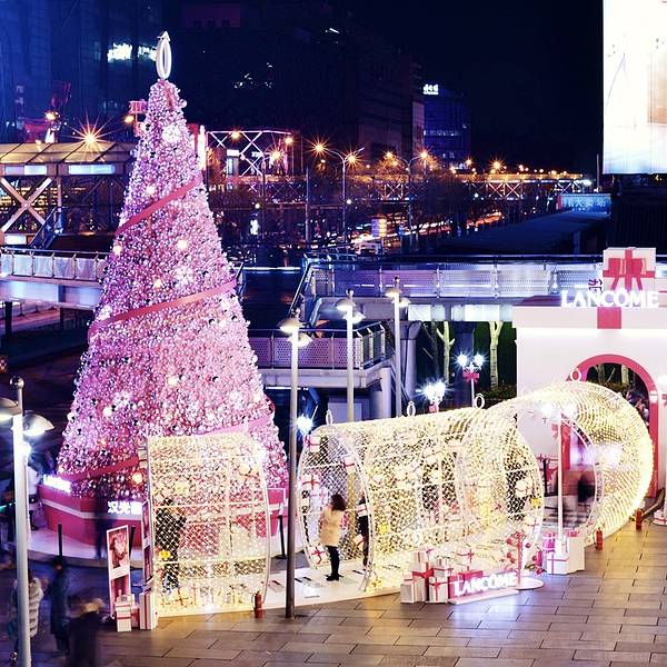 兰蔻冠名的圣诞树,粉粉嫩嫩的,妹子绝对会喜欢,站在圣诞树旁边,马桶哥也变小公举~