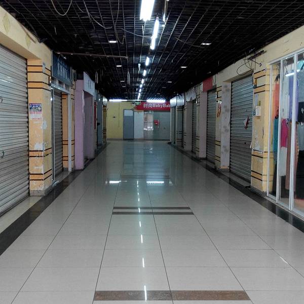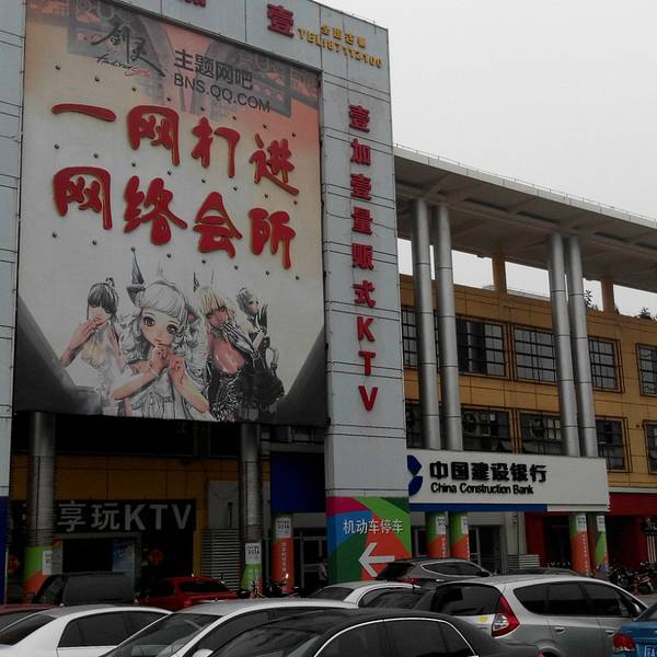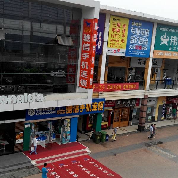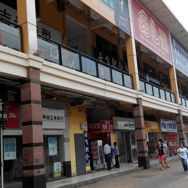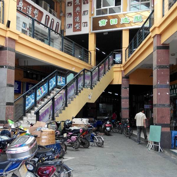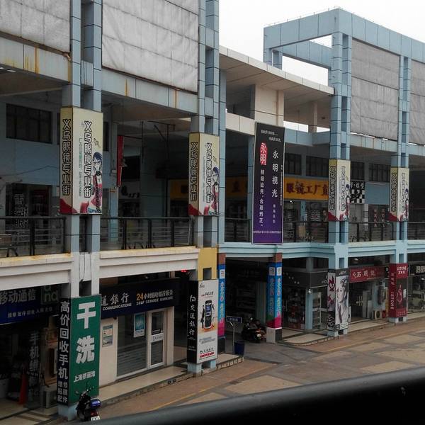 A、B区主要是二至三层的商业街,基本上都是十几到几十平米的小商铺,装修一般,整体环境略混乱