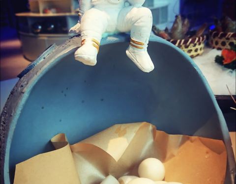 店内装修风格主打太空主题,有宇航员、太空舱元素,适合拍合影,好有feel。不太辣的香辣锅(mini活蛙仔2斤),很辣很过瘾,一份够两人吃了。秘制酥肉装在有太空特色的容器里,好可爱,炸的酥松美味。鸭血切片摆盘...